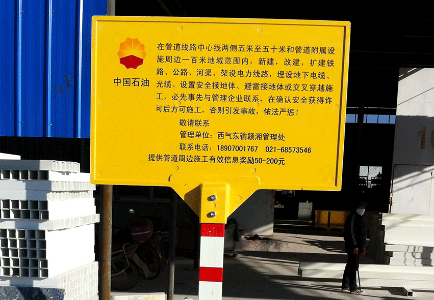 上圖為金能電力設備有限公司專門為中國石油天然氣股份有限公司西氣東輸工程制作的復合材料標志牌。